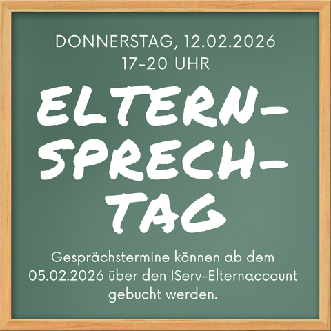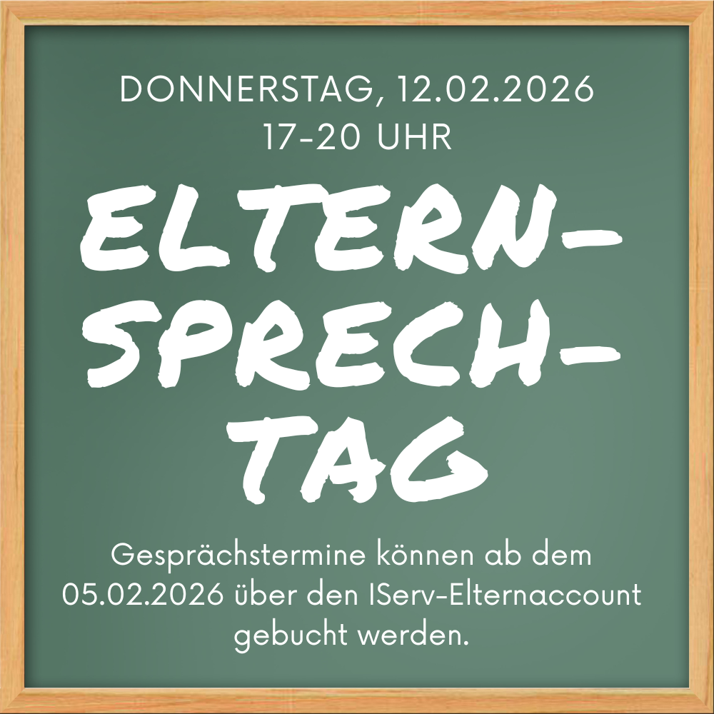 Der diesjährige Elternsprechtag wird am Donnerstag, 12. Februar 2026 von 17 bis 20 Uhr stattfinden. Konkrete Informationen erhalten die Eltern spätestens zu den Halbjahreszeugnissen.