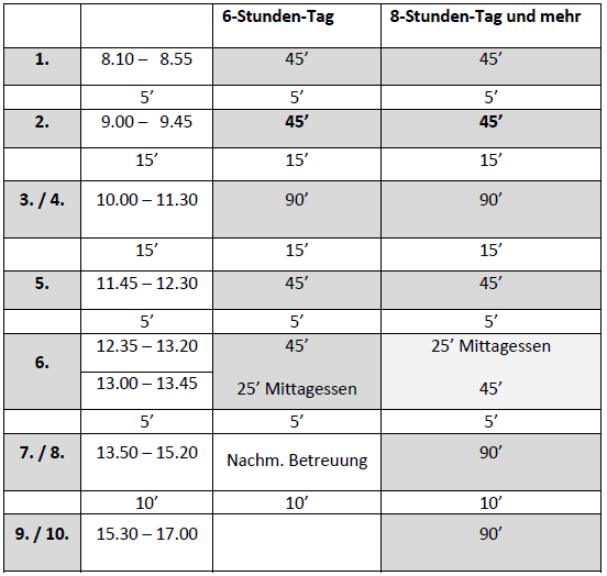 Unterrichtszeiten